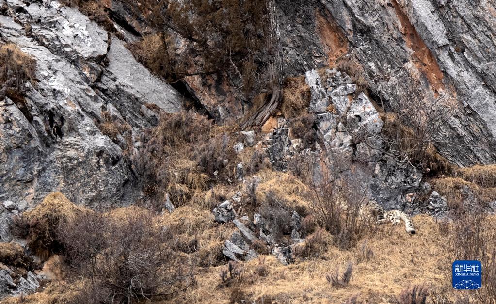 2月21日,在青海省玉樹(shù)藏族自治州雜多縣昂賽鄉(xiāng)境內(nèi)的昂賽大峽谷內(nèi),兩只雪豹正在休息。