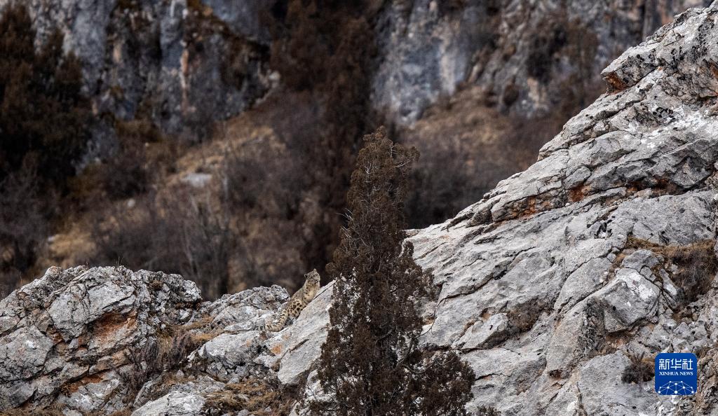 2月21日,在青海省玉樹藏族自治州雜多縣昂賽鄉境內的昂賽大峽谷內,一只雪豹正在休息。