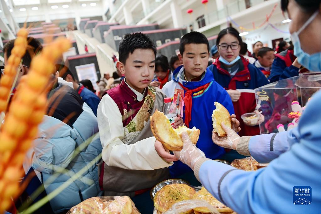2月21日,在西安市浐灞第一中學(xué)舉行的藏歷新年團(tuán)拜活動(dòng)上,漢藏學(xué)生品嘗特色小吃。