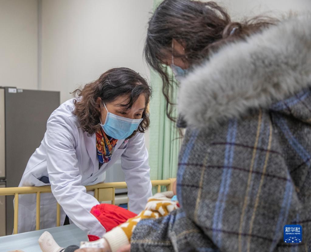 2月16日,在重慶醫(yī)科大學附屬兒童醫(yī)院兩江院區(qū)腎臟內(nèi)科,李秋在查房時檢查患兒身體狀況。