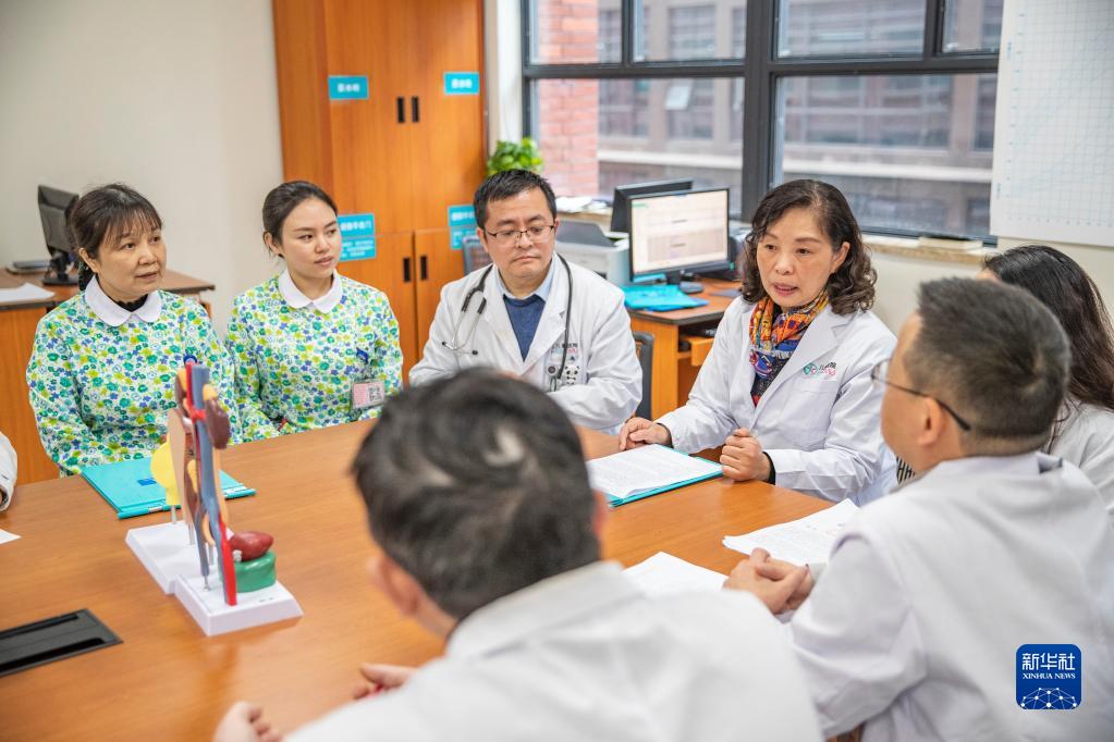 2月16日,在重慶醫科大學附屬兒童醫院兩江院區腎臟內科,李秋(中)與醫護人員討論疑難病例的治療方案。