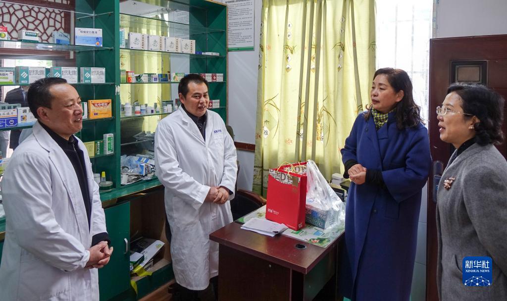 2020年11月15日,李秋(右二)在重慶市墊江縣曹回鎮(zhèn)徐白村村衛(wèi)生所調(diào)研基層兒科醫(yī)療衛(wèi)生和公共衛(wèi)生服務(wù)能力情況。