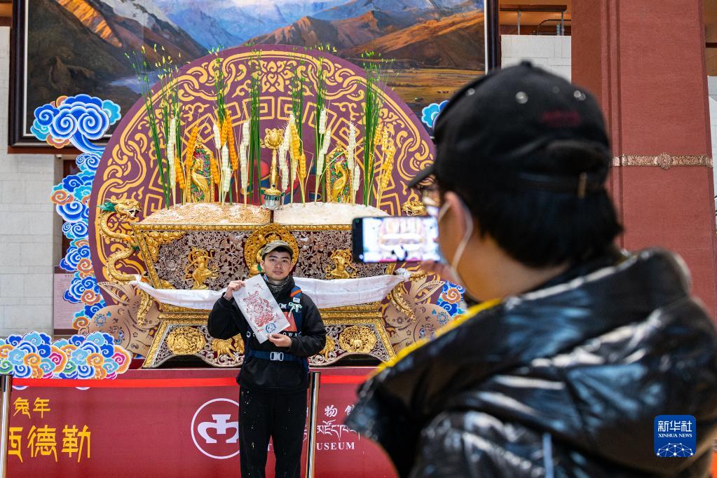藏歷新年期間,西藏博物館依據(jù)當(dāng)?shù)靥厣晁?,開展豐富多彩的活動,吸引游客和市民前來體驗。