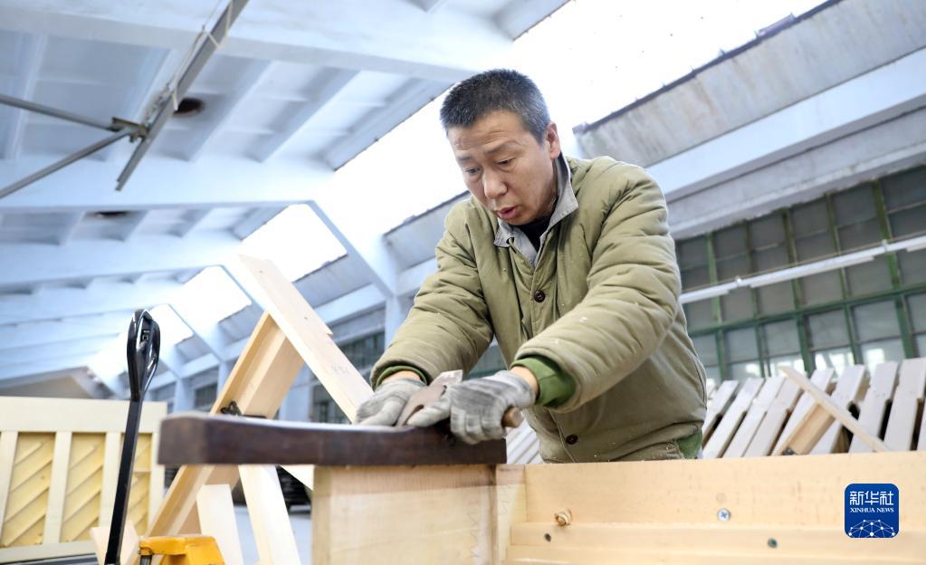 2月21日,工人在車間內加工鋼琴組件。
