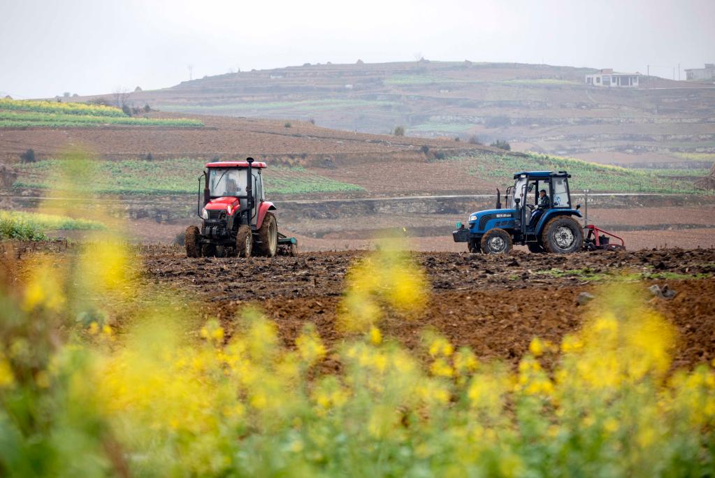 春暖花開時節(jié),各地農(nóng)民搶抓農(nóng)時,翻整田地,播種施肥,田間地頭呈現(xiàn)出一幅幅春耕春管圖。