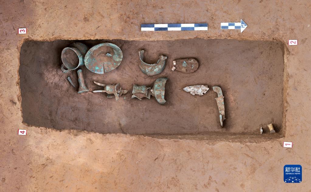 殷墟東圍溝內祭祀坑K23上層發掘情況(資料照片)。