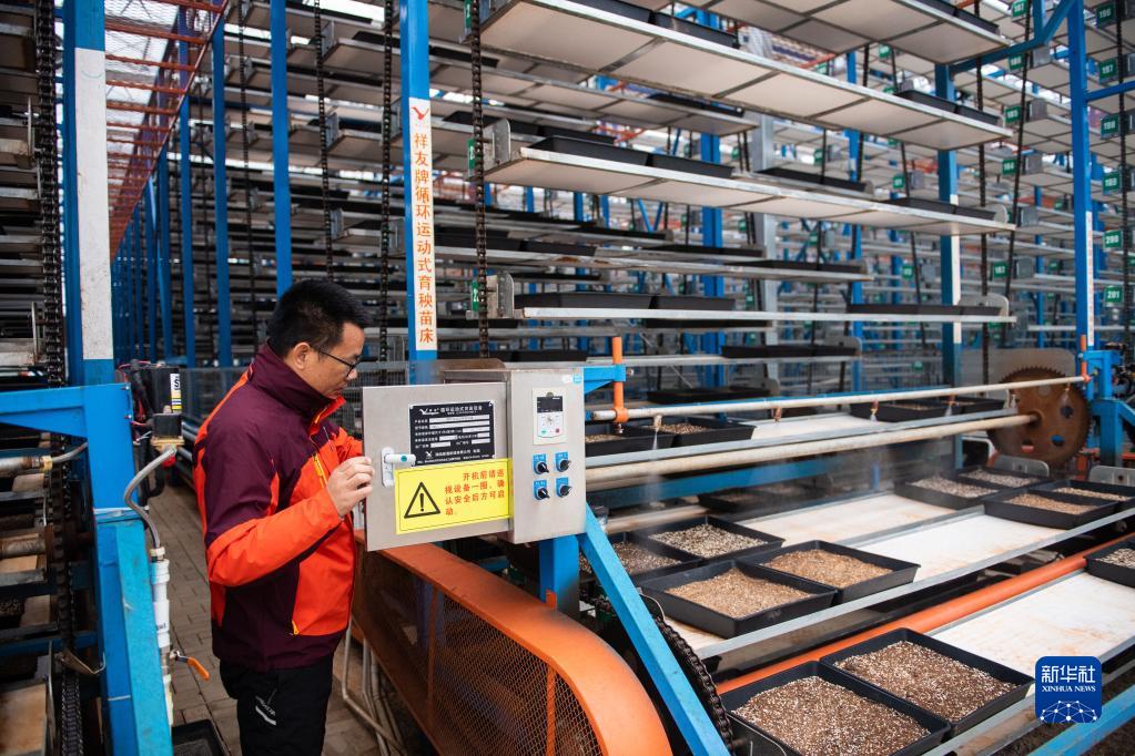 2月9日,湖南江南生態農業科技開發有限公司負責人薛永強在位于益陽市赫山區蘭溪鎮蘇家湖村的育秧工廠調試苗床。新華社記者 陳思汗 攝