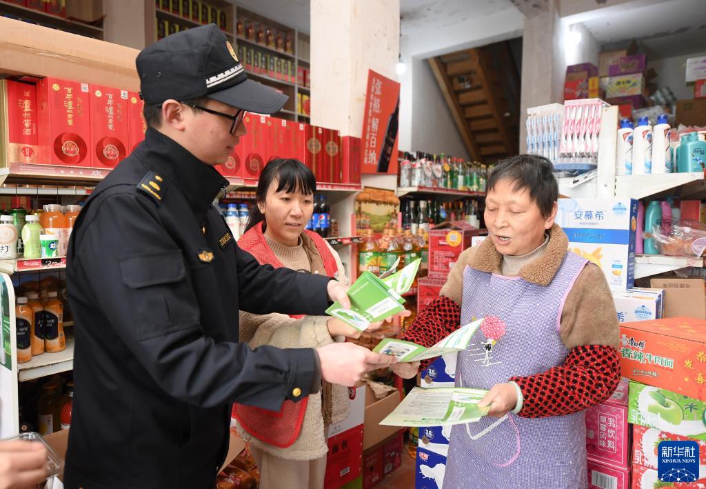 2月22日,在八里店鎮(zhèn)西山社區(qū),黨員志愿者和行政執(zhí)法隊員向沿街商戶發(fā)放垃圾分類、沿街清運的告知單。