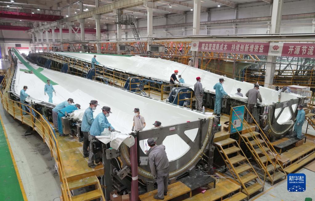 2月22日,保定國家高新技術產業開發區一家風電設備制造企業工人在生產車間工作。