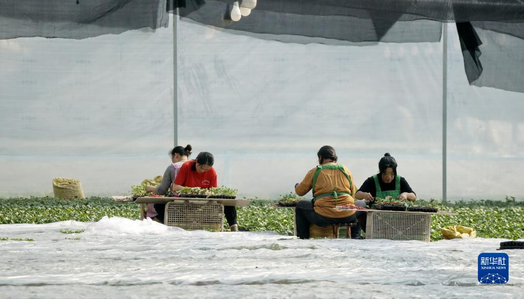 2月22日,北京市大興區龐各莊鎮一家合作社的農民在大棚內篩選秧苗。