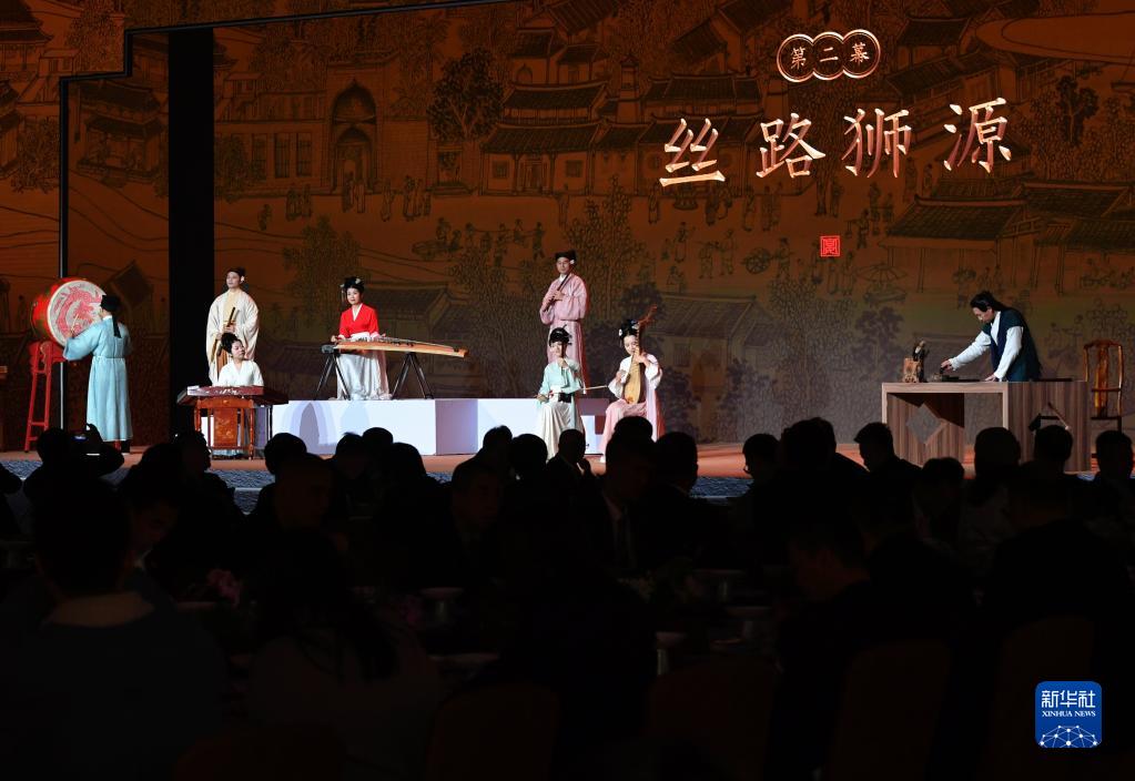 當日,福建泉州石獅市舉辦“閩菜地標美食城市”授牌暨“宋元海絲宴”推介儀式。“宋元海絲宴”以南宋福建泉州石獅籍美食家林洪著作《山家清供》為還原藍本,兼收閩南名菜,集山珍、海味于一席,將菜品、宴席與宋元器皿、場景、樂曲、詩詞等融合,展現宋元時期世界海洋商貿中心獨特的美食文化。新華社記者 魏培全 攝