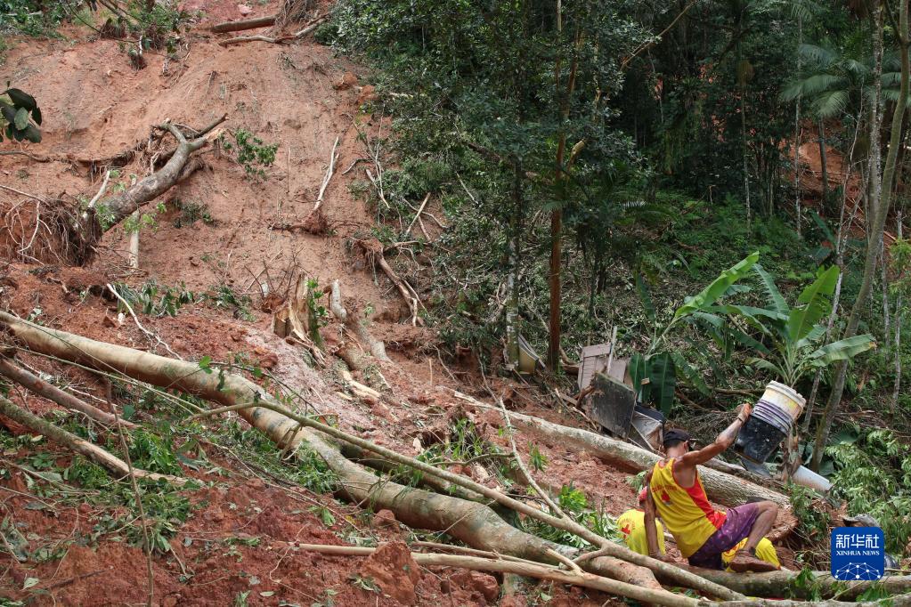 這是2月22日在巴西圣保羅州圣塞巴斯蒂昂拍攝的一處山體滑坡地點。