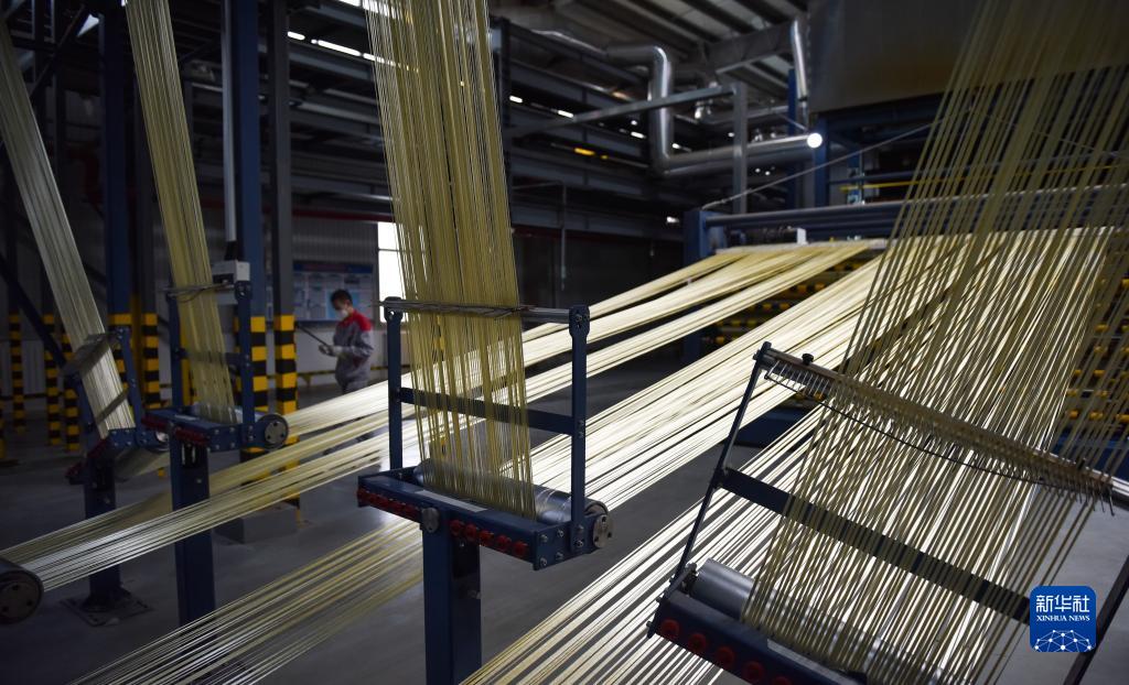 2月22日,在中復(fù)神鷹碳纖維西寧有限公司,工作人員在檢查碳纖維生產(chǎn)線運行情況。