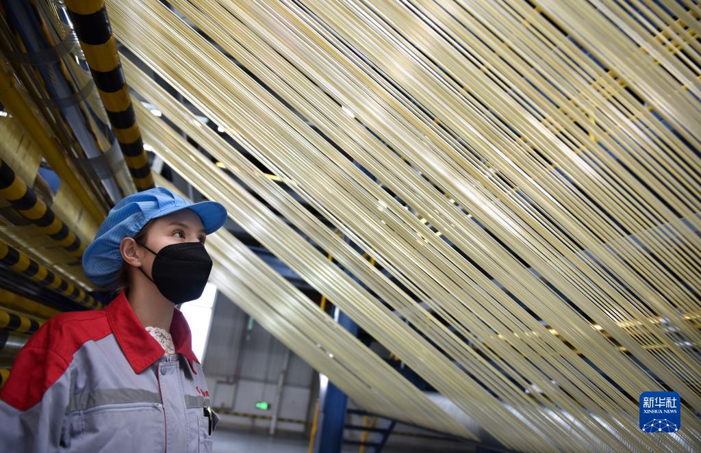 2月22日,在中復(fù)神鷹碳纖維西寧有限公司,工作人員在檢查碳纖維原絲。