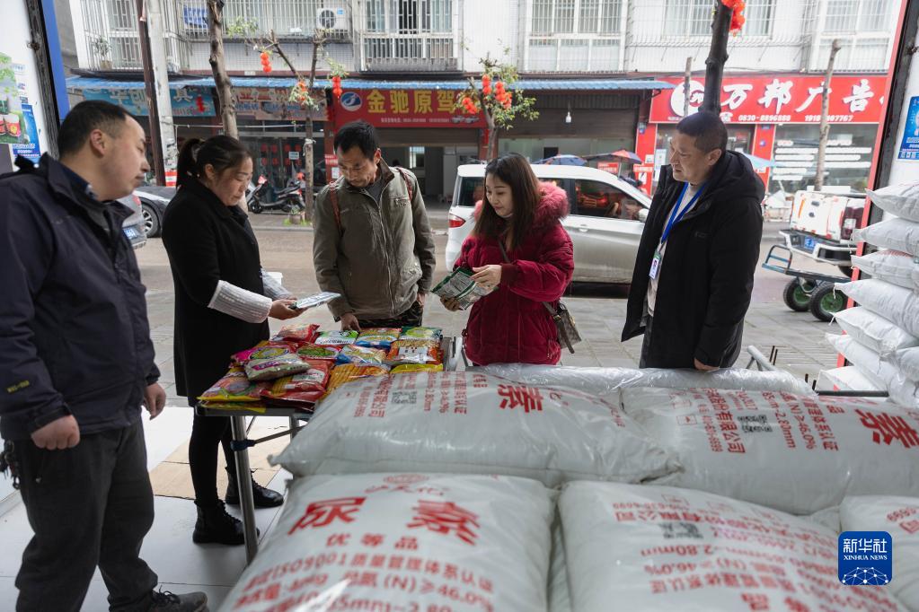 2月22日,在四川省瀘縣云錦鎮,當地村民在供銷社的超市前選購種子。