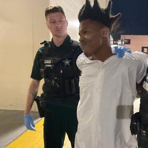 這張2月22日美國奧蘭治縣警方公布的照片顯示,犯罪嫌疑人(中)被逮捕。
