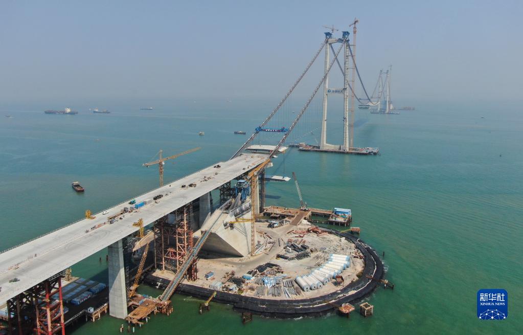 這是2月22日拍攝的深中通道西錨碇、伶仃洋大橋西塔及遠(yuǎn)處的東塔(無(wú)人機(jī)照片)。