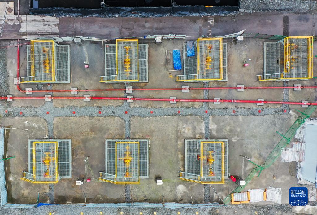 這是2月21日拍攝的涪陵頁巖氣田焦頁12號平臺正在生產中的頁巖氣井(無人機照片)。