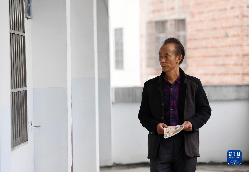在廣西賓陽縣王靈鎮中心學校七新教學點,王英紅老師下課后走在教室外(2月22日攝)。