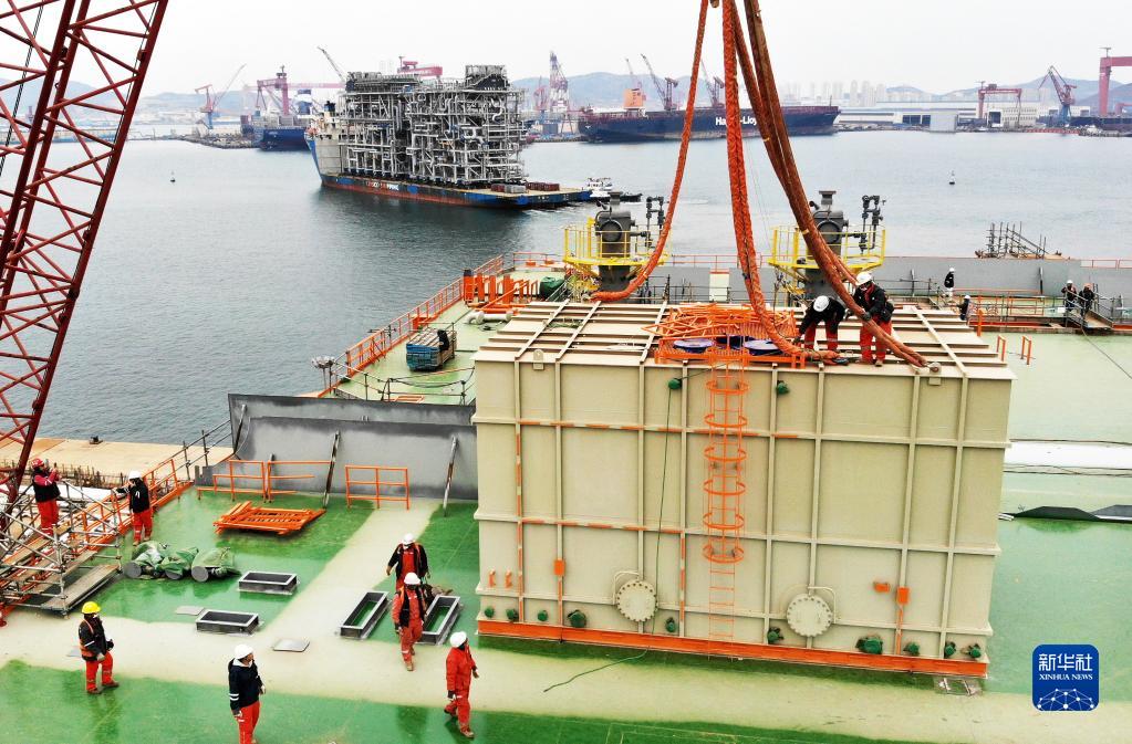 新華全媒+丨渤海灣千億方大氣田最大組塊青島封頂