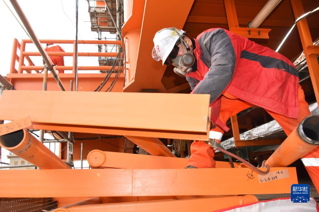 2月22日,工人在渤中19-6凝析氣田一期CEPA(中心處理平臺)組塊建造現場進行施工作業。
