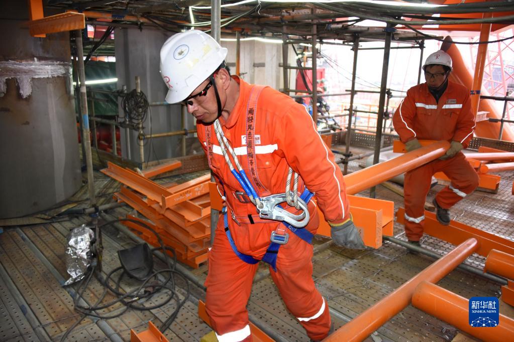 2月22日,工人在渤中19-6凝析氣田一期CEPA(中心處理平臺)組塊建造現(xiàn)場進行施工作業(yè)。