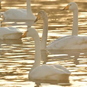 入冬以來,遼寧省北票市八家子鄉(xiāng)紅村大凌河畔的400多只白天鵝在河水淺灘處嬉戲覓食,吸引人們前來觀賞和拍照。