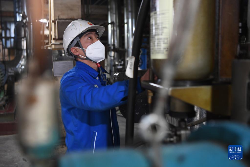 蘭州石化公司煉油運行二部運行工程師楊永納對生產裝置進行日常巡檢(2月21日攝)。