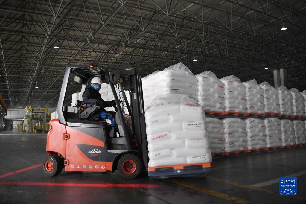 蘭州石化公司化工儲(chǔ)運(yùn)中心工作人員用叉車進(jìn)行裝卸作業(yè)(2月21日攝)。