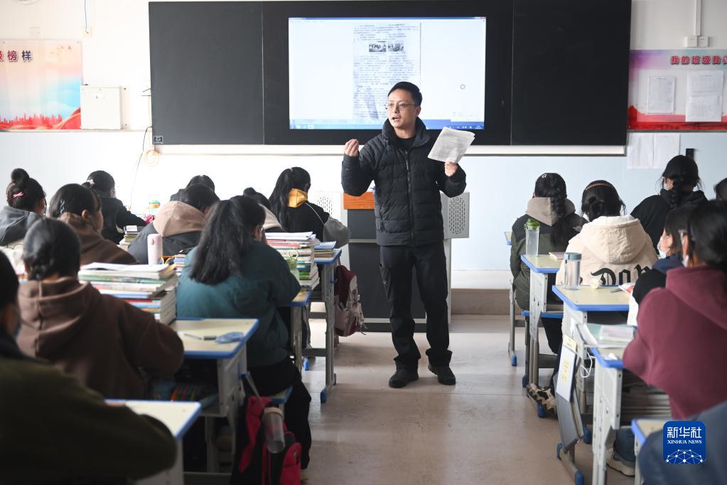 2月23日,上海援青教師鐘祖華在給學生上課。