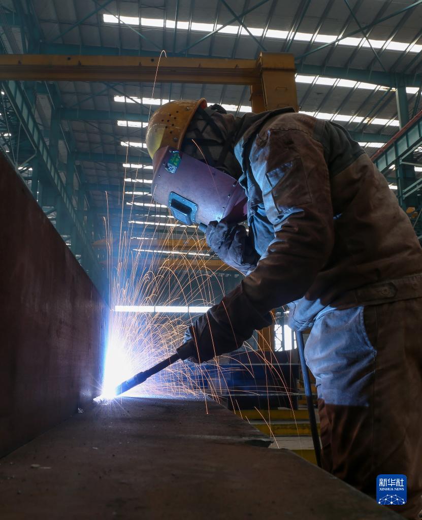 2月23日,工人在阜新市彰武縣華洲重工股份有限公司生產車間內工作。