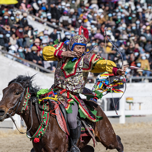 每年藏歷新年初三,在拉薩賽馬場舉辦馬術(shù)表演已成為當?shù)貞c祝新年的傳統(tǒng),深受廣大群眾喜愛。騎手們英姿颯爽,為觀眾們帶來騎馬拾哈達、騎馬射箭等精彩表演。