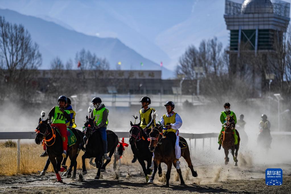 每年藏歷新年初三,在拉薩賽馬場(chǎng)舉辦馬術(shù)表演已成為當(dāng)?shù)貞c祝新年的傳統(tǒng),深受廣大群眾喜愛。騎手們英姿颯爽,為觀眾們帶來騎馬拾哈達(dá)、騎馬射箭等精彩表演。