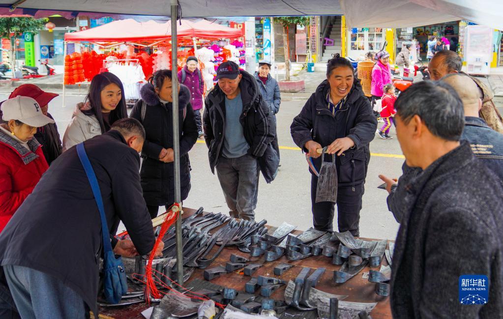 2月23日,村民在貴州省務(wù)川仡佬族苗族自治縣茅天鎮(zhèn)集市選購農(nóng)具。