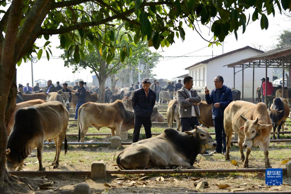 2月22日,人們在云南省西雙版納傣族自治州勐海縣勐遮鎮曼燕大牲畜交易市場交易。