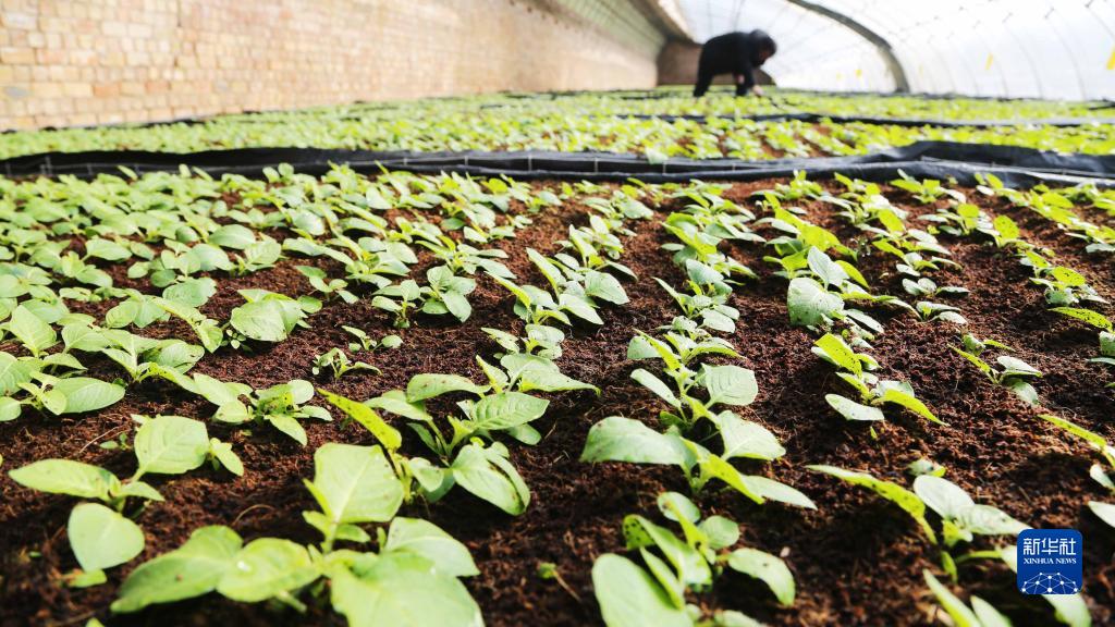 2月23日,工人在甘肅省定西市安定區(qū)香泉鎮(zhèn)馬鈴薯種薯扶貧產(chǎn)業(yè)園管護脫毒種薯苗。