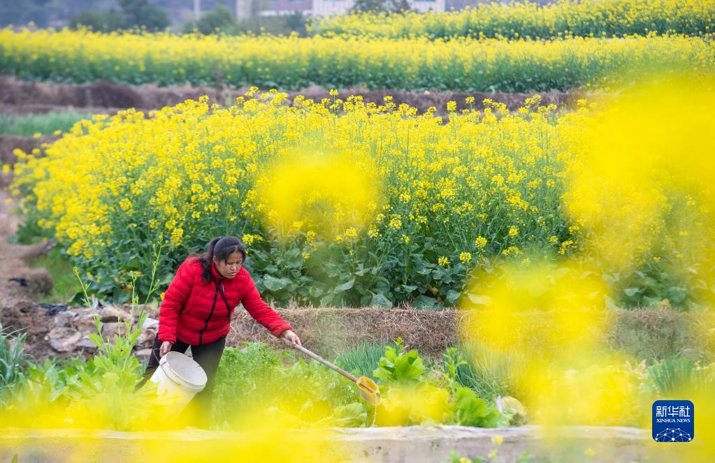 2月23日,村民在貴州省黔東南苗族侗族自治州從江縣貫洞鎮(zhèn)貫洞村給蔬菜澆水。