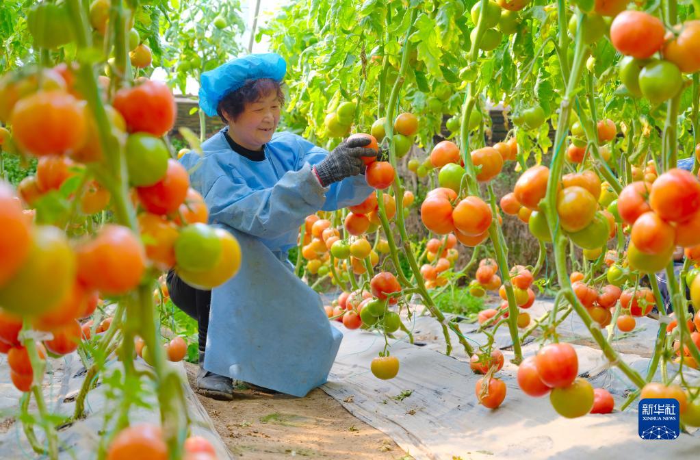2月24日,在陜西省渭南市合陽縣百良鎮白眉村的一座家庭農場,農戶在溫室大棚采摘成熟的草莓西紅柿。