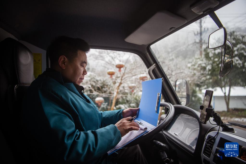 2月22日,中國郵政宣恩分公司投遞員在送完郵件后填寫投遞數量統計表。
