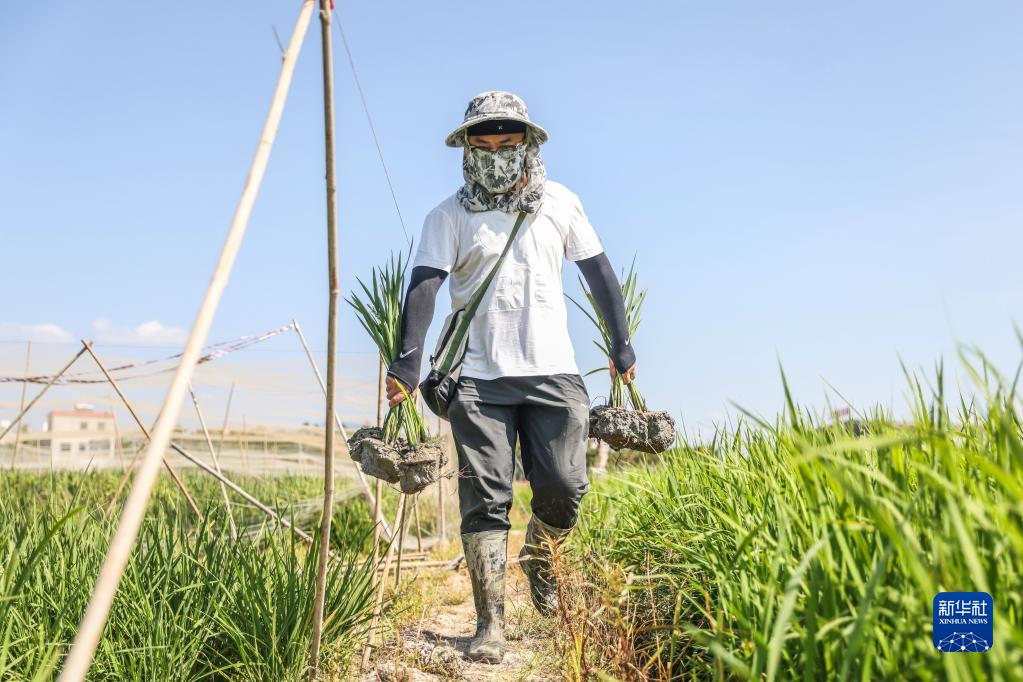 2月22日,青島海水稻研究發展中心的科研人員殷會德走在三亞的國家南繁科研育種基地里。