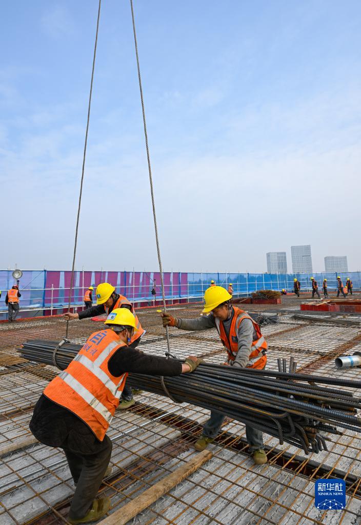 2月24日,在位于成都東部新區的四川大學華西東部醫院項目建設現場,工人在進行封頂施工作業。