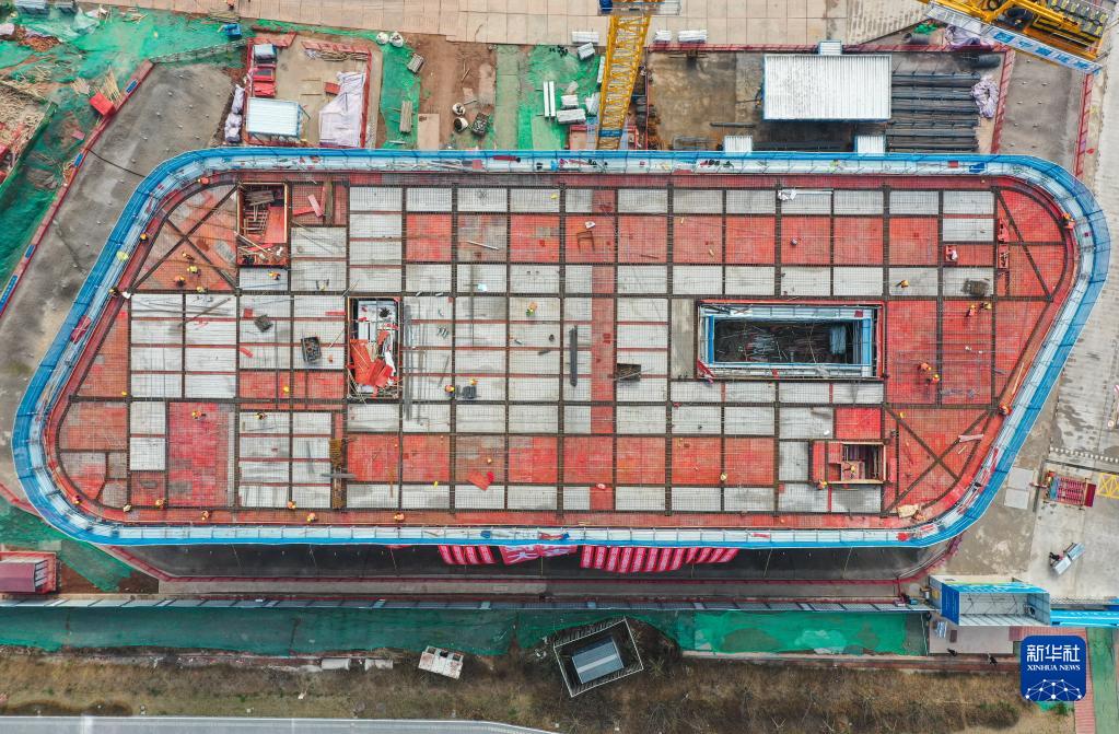 2月24日,在位于成都東部新區(qū)的四川大學(xué)華西東部醫(yī)院項目建設(shè)現(xiàn)場,工人在進行封頂施工作業(yè)(無人機照片)。
