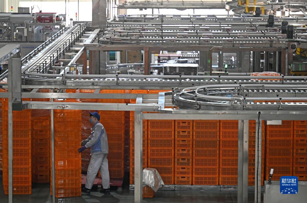 在天津海河乳品有限公司廠房內,工作人員在運輸貨物(2月20日攝)。