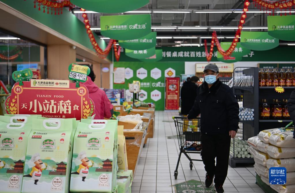 顧客在天津食品集團津農精品體驗店選購產品(2月23日攝)。