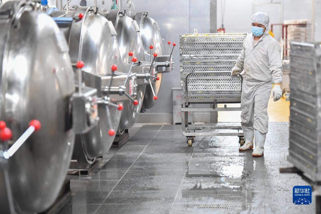 2月24日,在瀏陽市省級農業科技園區的一家預制菜企業生產車間,工作人員準備對預制菜進行高溫除菌。