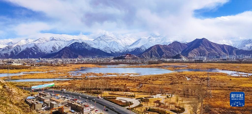 2月24日,西藏拉薩迎來降雪天氣,城區南北的群山被白雪覆蓋,分外迷人。