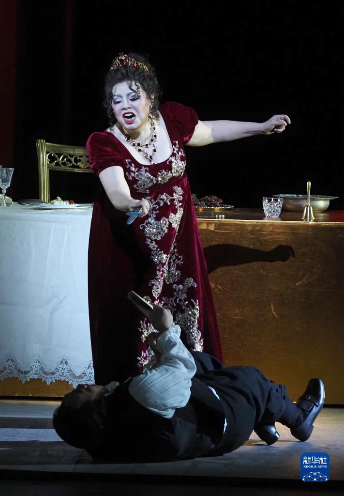 當晚,由國家大劇院、上海歌劇院與陜西大劇院聯合制作的新版普契尼歌劇《托斯卡》在上海大劇院上演。此次演出特別邀請上海歌劇院院長、著名指揮家、鋼琴家許忠執棒,著名女高音歌唱家和慧領銜主演。新版歌劇《托斯卡》還將在北京、西安和福建巡回上演。新華社記者 任瓏 攝