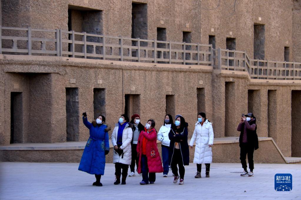 2月23日,參加莫高學堂敦煌文化研學的學員在莫高窟參觀。
