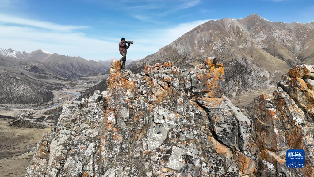 2月22日,更求曲朋在昂賽大峽谷里巡護途中拍照(無人機照片)。