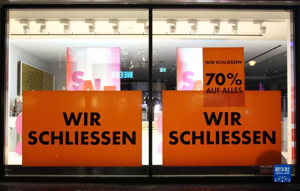 這是2月24日在德國法蘭克福拍攝的一家關閉的店鋪。